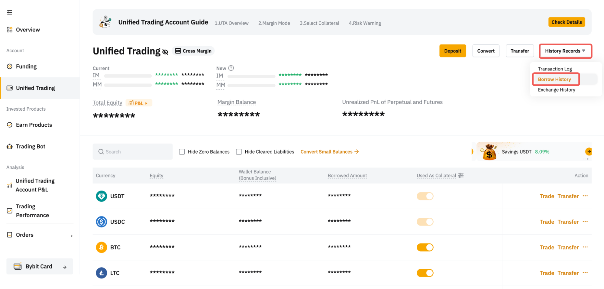Assets obtained through Manual Borrow will increase your wallet balance and will be recorded as borrowed amounts. They can be used to place orders or to auto-repay the borrowed amounts arising from Derivatives.