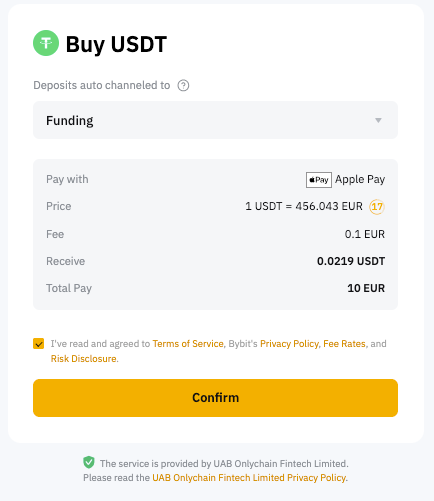 Note: Apple Pay is only compatible with iOS devices (iOS 16.2 or above) and the Safari browser supports Bybit version 4.40.0 or higher.