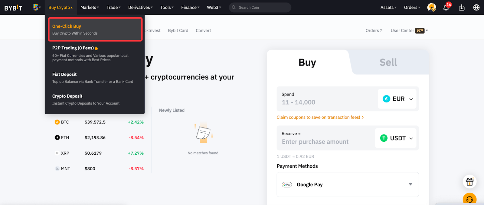 Step 1: Click on Buy Crypto One-Click Buy on the top left corner of the navigation bar to enter the One-Click Buy page