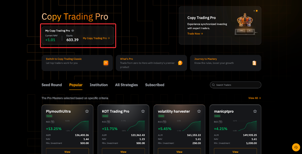 Go to Copy Trading ProPro Master Center. You can access the page by clicking the summary card of your Copy Trading Pro strategies in the top right corner of the product page.