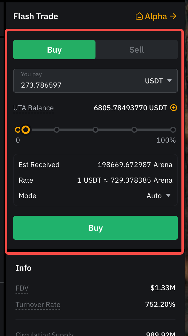 • For buy orders, you can also use the percentage bar to quickly set the trade value based on your available UTA balance.