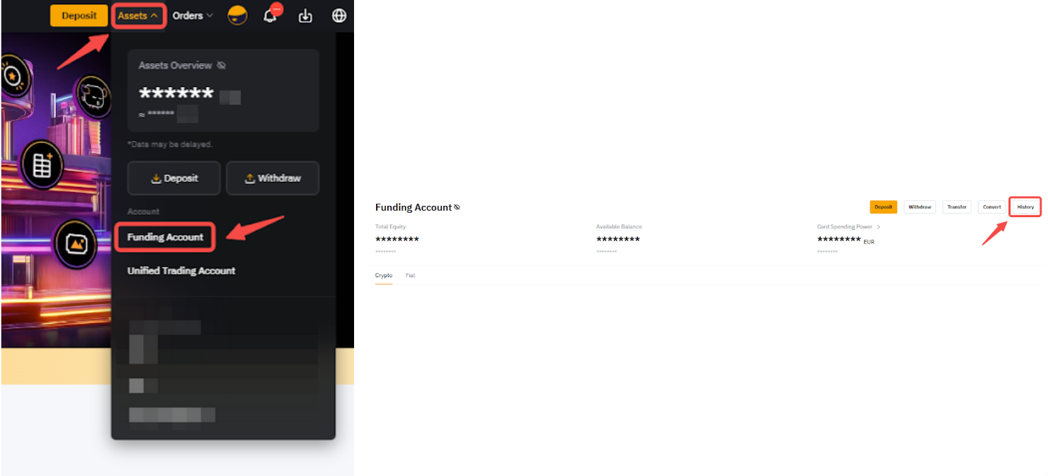 Step 1: Please click on AssetsFunding AccountHistory Export or go to the Data Export page.