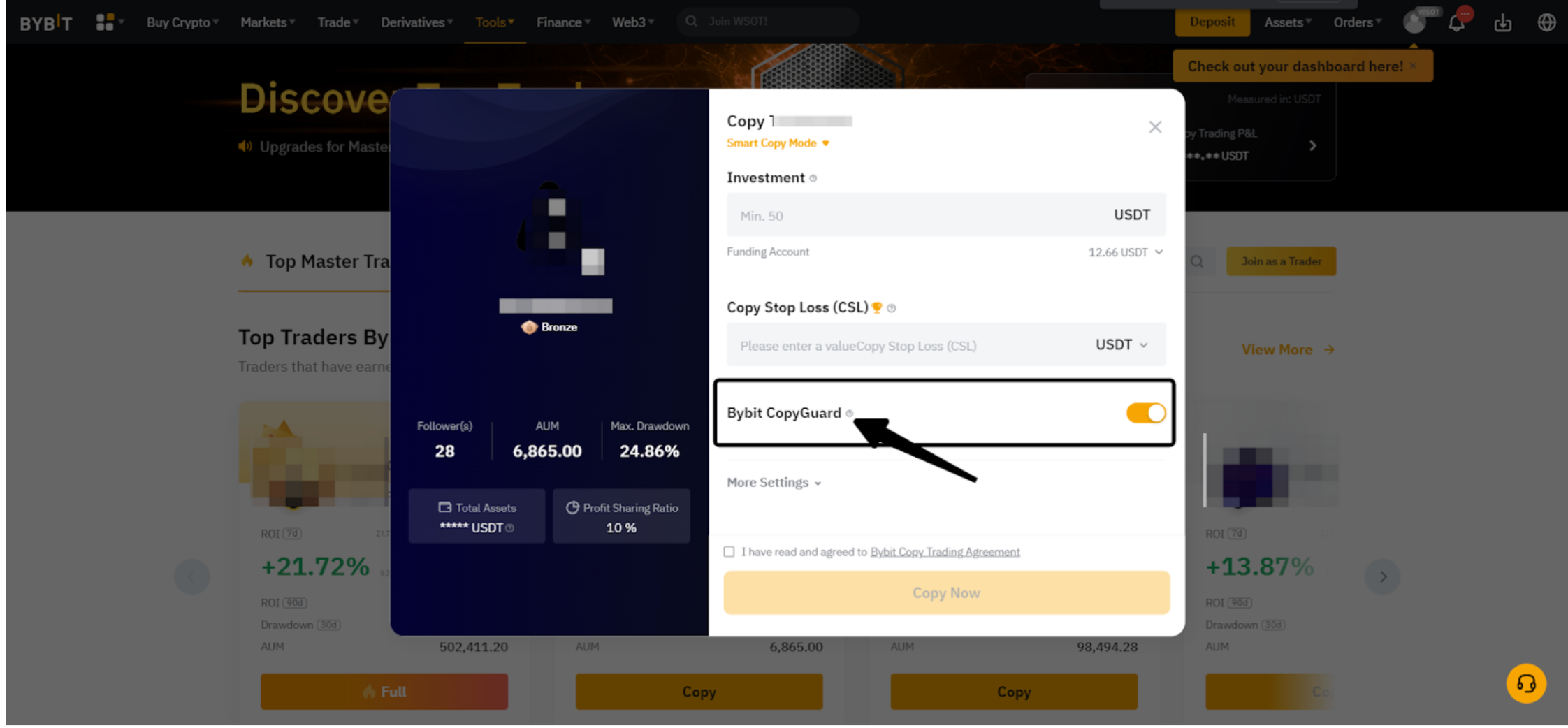Bybit's Copy Trading Service features a price protection mechanism to mitigate slippage risks upon Follower’s order creation. The system implements a default maximum slippage allowance of 0.1% per order, which can be adjusted by users up to a maximum of 5%.