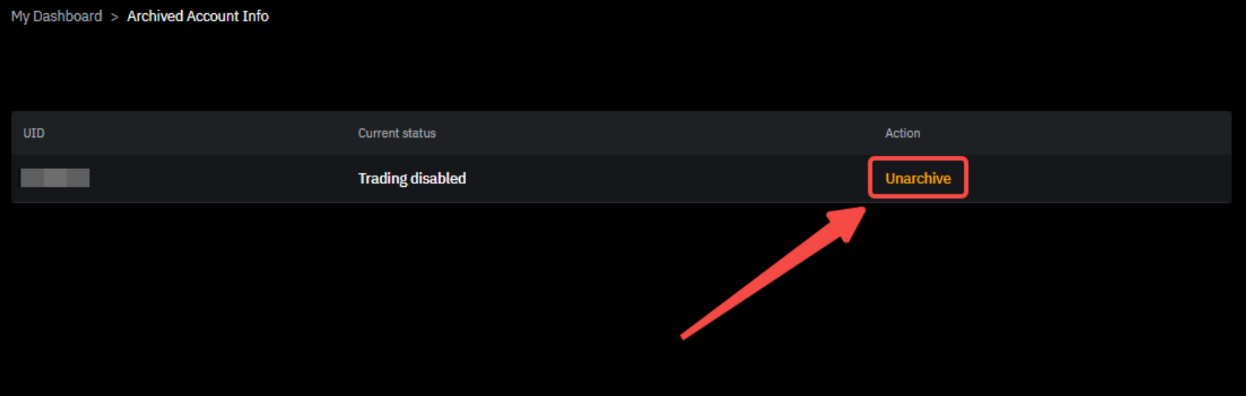 ¡Tu cuenta se ha desarchivado correctamente! Se te redirigirá al panel de control a continuación, donde podrás volver a utilizar la cuenta para hacer trading en MT5.