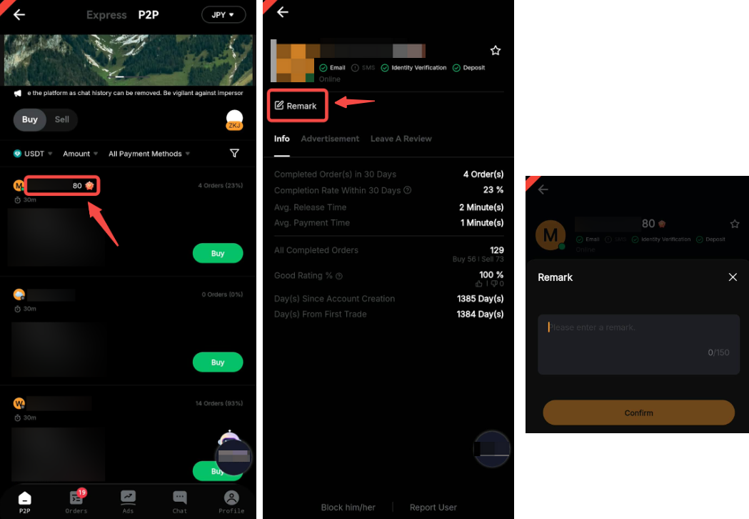 3. Negocie activamente en la plataforma de operaciones P2P y preséntese como un anunciante fiable, lo que aumentará significativamente sus posibilidades.