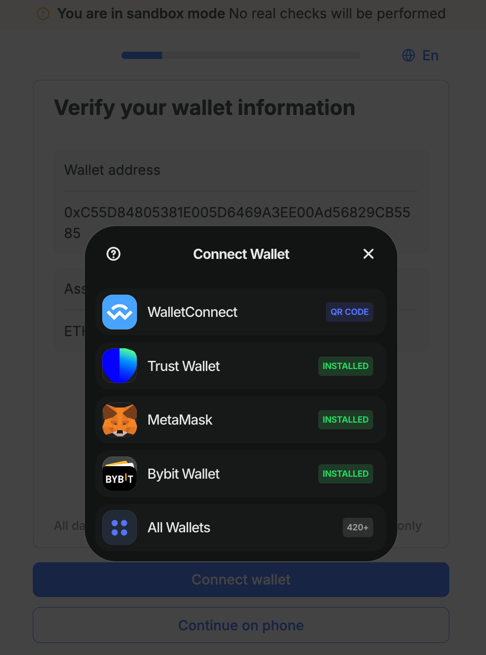 Step 3: If it’s from a Personal Wallet, connect your wallet to complete the verification.