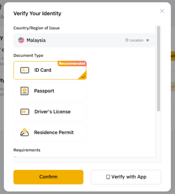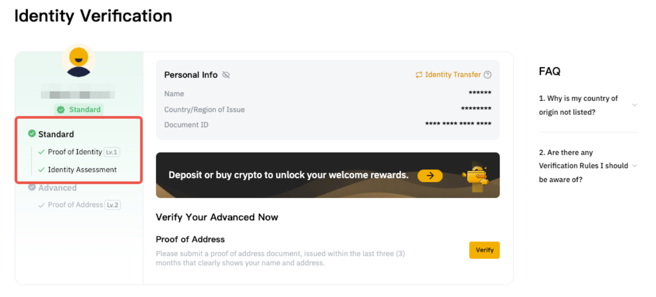 La verificación de identidad individual se divide en tres niveles: Estándar, Avanzado y Pro. Las diferencias en los beneficios y los límites de retiro entre estos tres niveles se pueden encontrar en Beneficios de diferentes niveles KYC. Este artículo proporciona una guía paso a paso para completar la verificación de identidad de nivel Estándar, Avanzado y Pro.