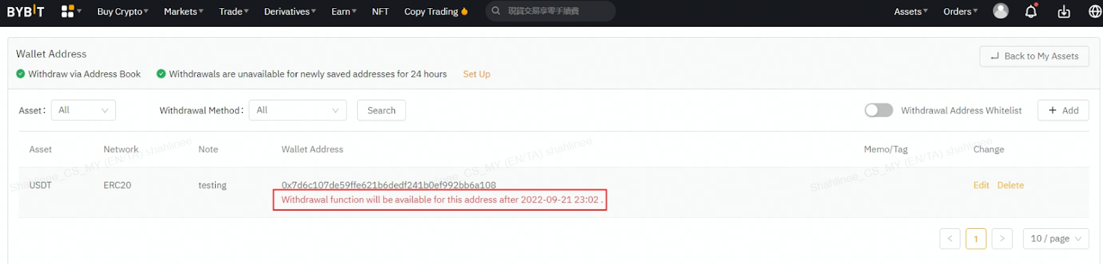 Al activar esta función, la dirección de retiro recién agregada no podrá ser utilizada para realizar retiros durante las siguientes 24 horas. Esto proporciona un nivel adicional de seguridad y ayuda a evitar retiros no autorizados. Visite este enlace para gestionar la seguridad de sus reintegros.