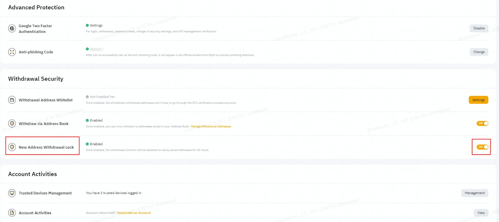 7. Activar el bloqueo de retiro de nuevas direcciones