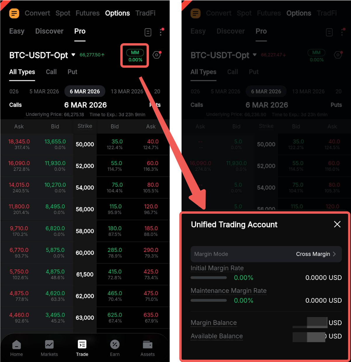 Antes de empezar a operar con opciones, asegúrese de que su modo de margen esté establecido en Margen Cruzado o Margen de Cartera, ya que el trading de opciones en Bybit no admite el modo de Margen Aislado.