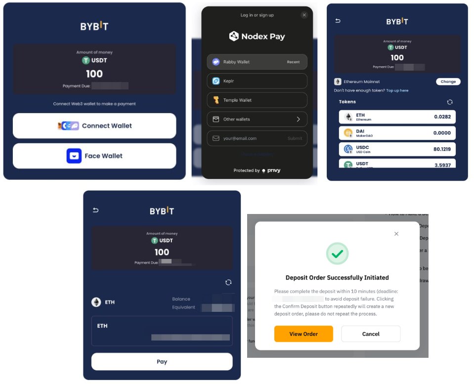 — Actualmente, los depósitos a través de Nodex Pay solo se admiten en el sitio web de Bybit.