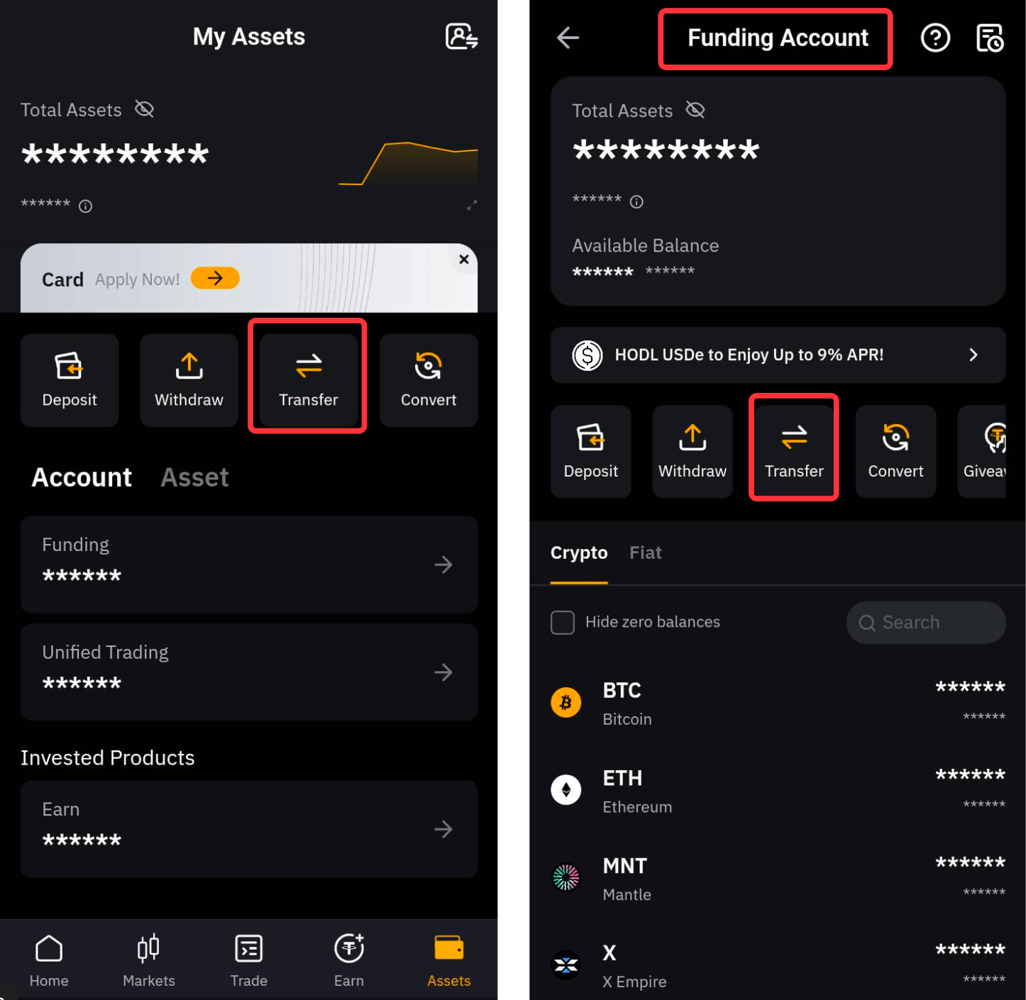 Paso 2: En la página Activos, puedes transferir activos de las dos siguientes maneras: