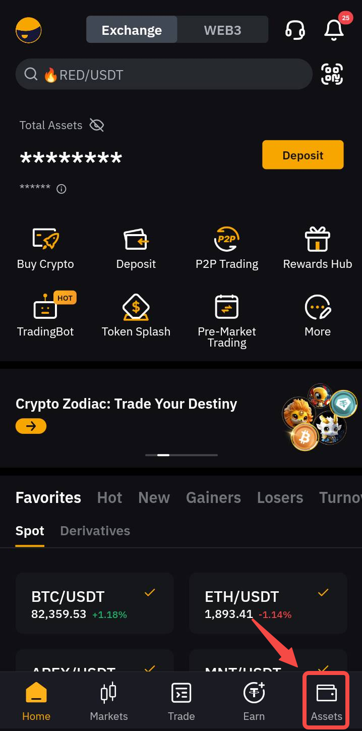 Paso 1: Haz clic en Activos en la esquina inferior derecha de la página de inicio de Bybit.