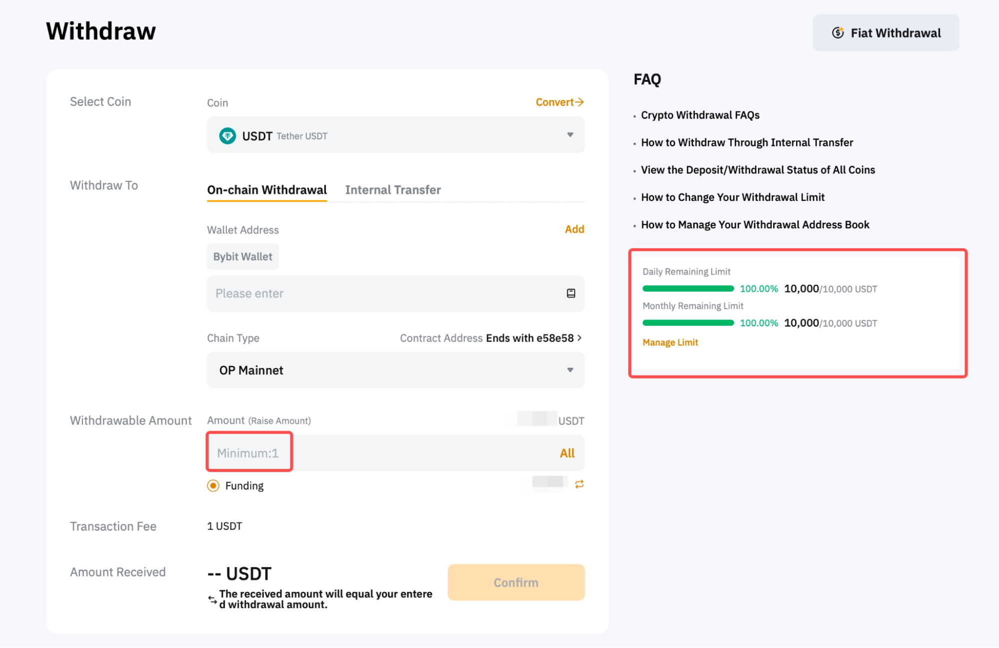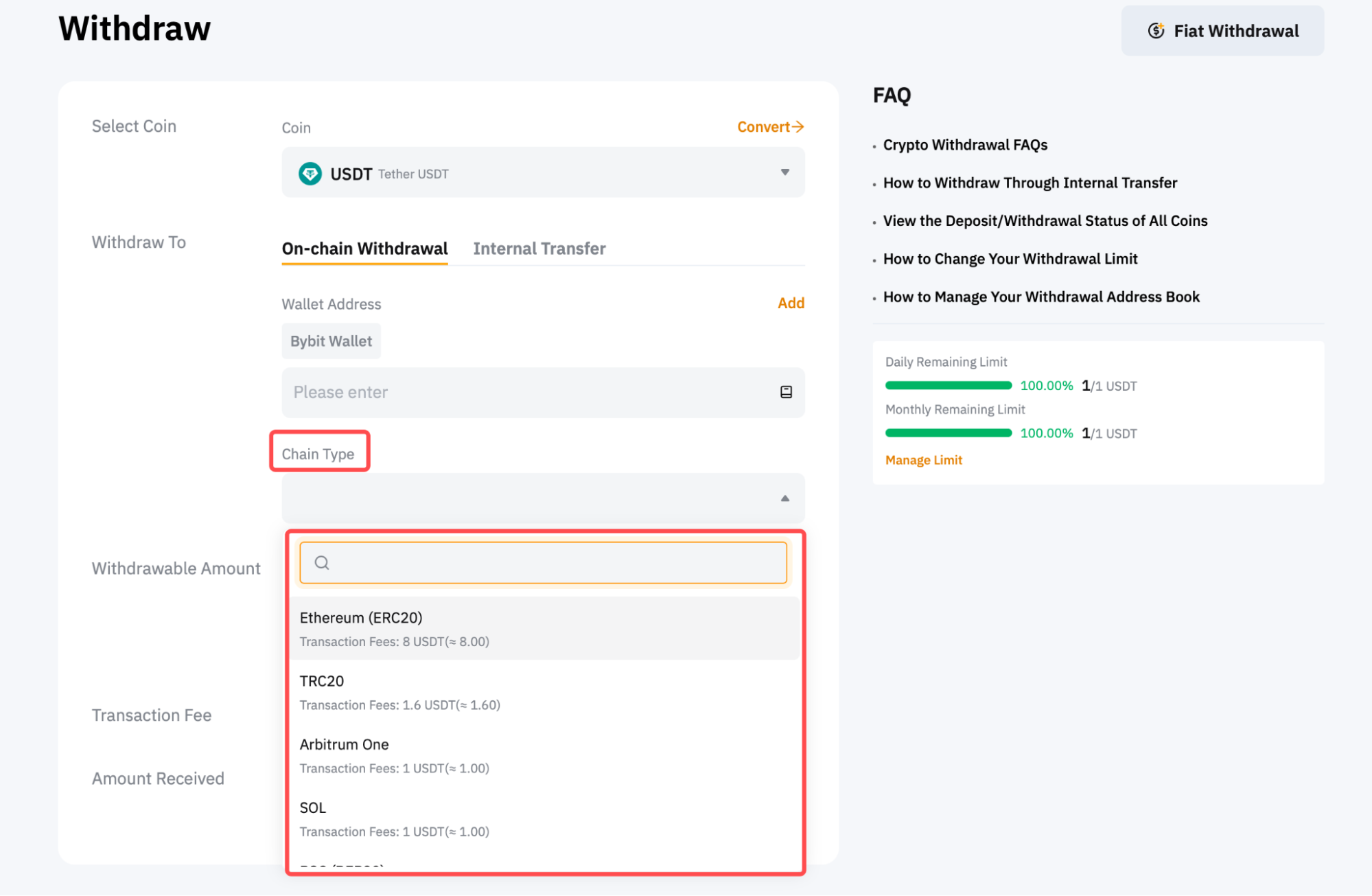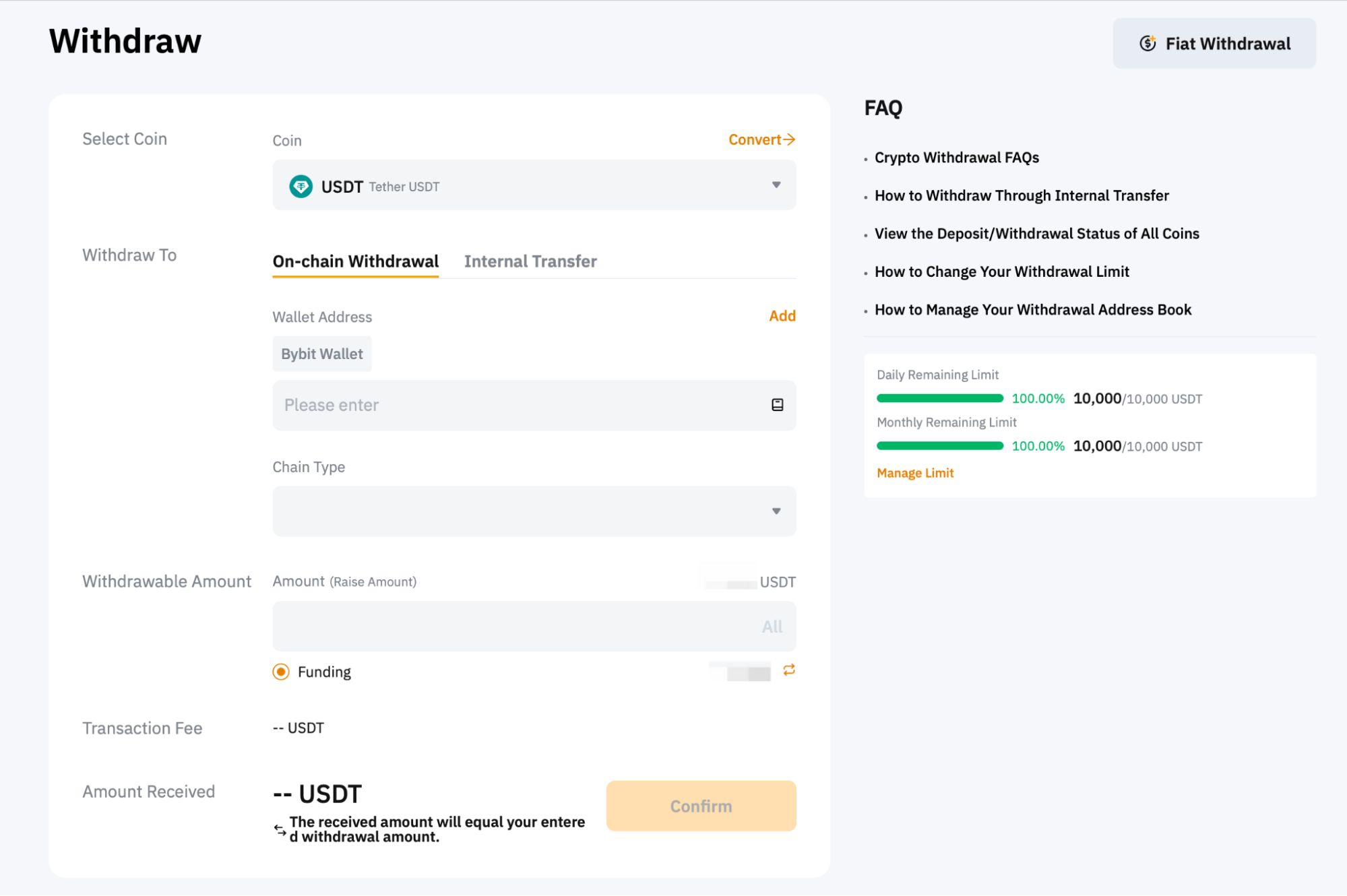 — Bybit admite retiros inmediatos. El tiempo de confirmación depende de la cadena de bloques y su tráfico de red actual. Para obtener más información, consulta Preguntas frecuentes: Retiro de criptomonedas.
