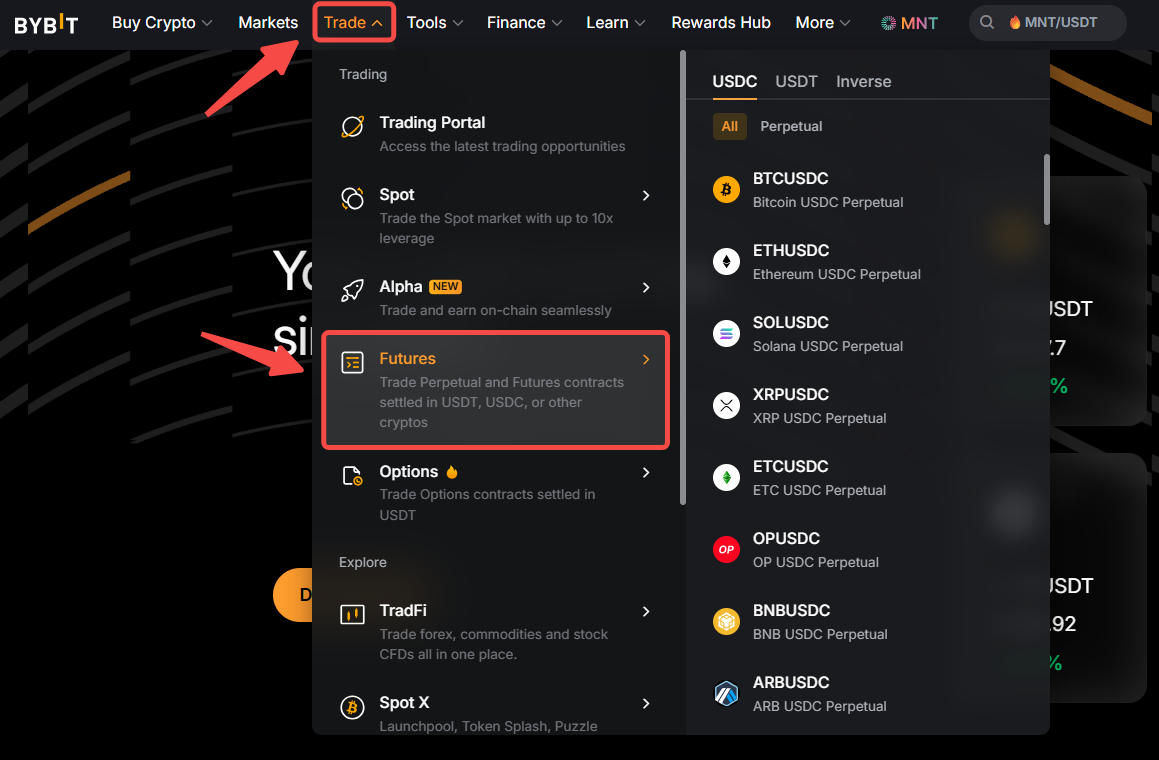 Paso 1: Inicie sesión en su cuenta de Bybit y haga clic en Trade Futuros en la barra de navegación superior.