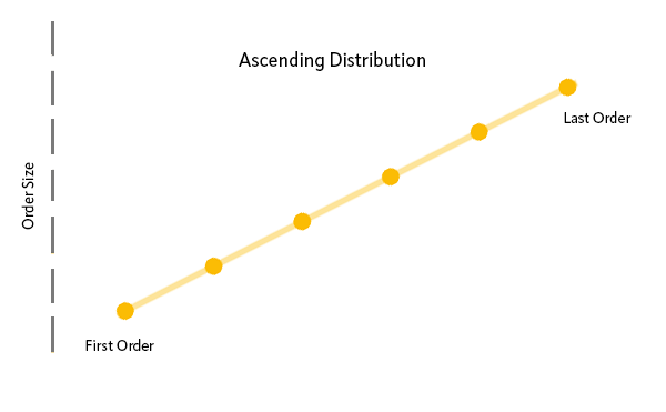 a. Puedes optar por distribuir tu orden uniformemente (División uniforme) o con incrementos geométricos en cualquier dirección (Aumento o Disminución).