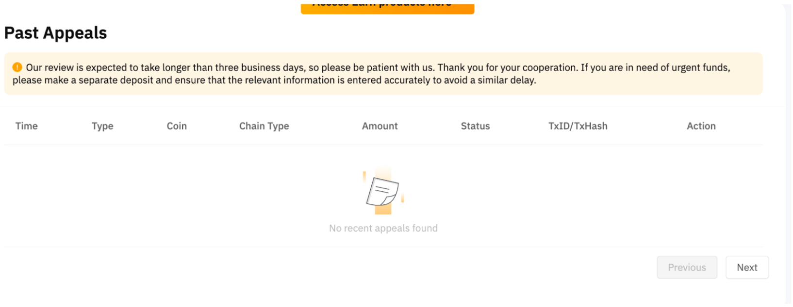 Una vez que haya obtenido todos los detalles del reembolso de la plataforma de intercambio correspondiente, puede consultar las siguientes instrucciones para presentar una apelación de autoservicio para su criptodepósito en Bybit.