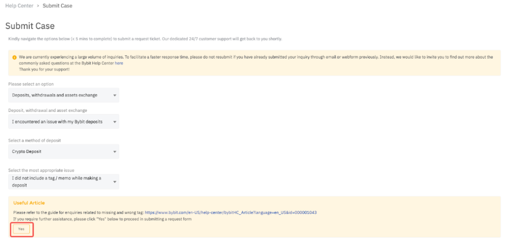 Langkah 2: Silakan mengirimkan kasus pada Formulir Banding "Tidak menyertakan tag/memo". Pastikan Anda membaca persyaratan yang dinyatakan dalam Langkah 3 sebelum mengeklik Ya untuk melanjutkan.