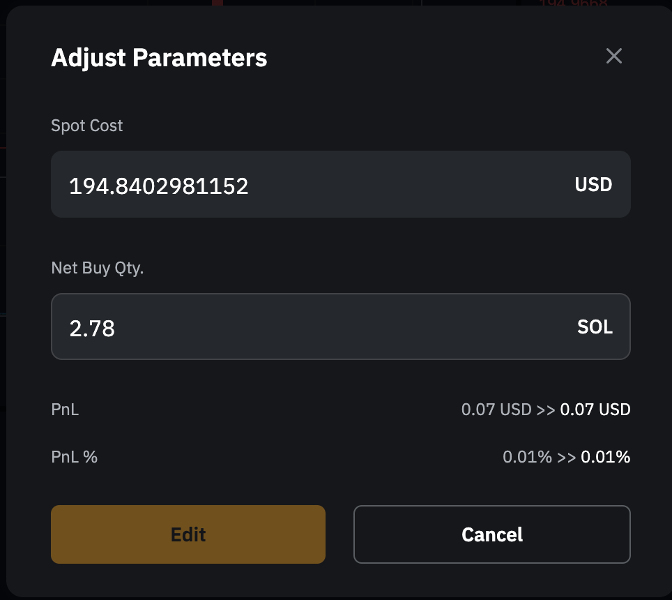 Bybitでは2025年2月12日以降に当プラットフォームで収集されたデータを使用して現物コストを計算します。表示されているコストが実際のコストと一致しない場合は、手動で調整できます。