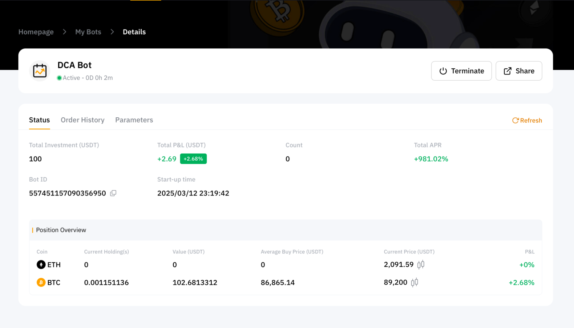 ここでは、DCAボット管理プロセス全体を通じて、初めてのDCA取引を簡単に行うためのステップバイステップガイドをご紹介します。
