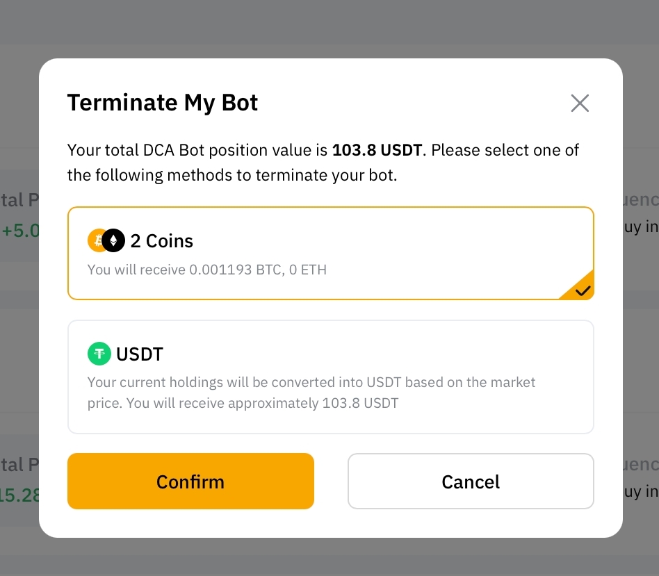積立ボットが終了したら、取引ボットアカウントの資金は資金調達アカウントに自動転送されます。