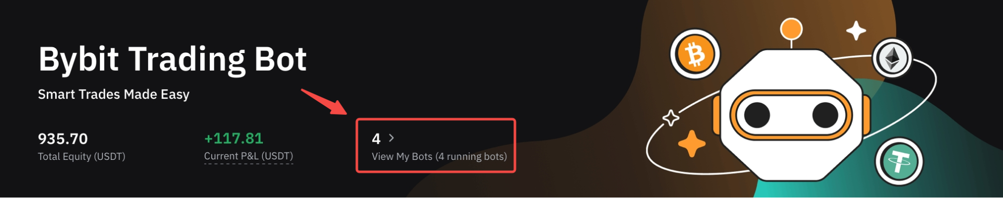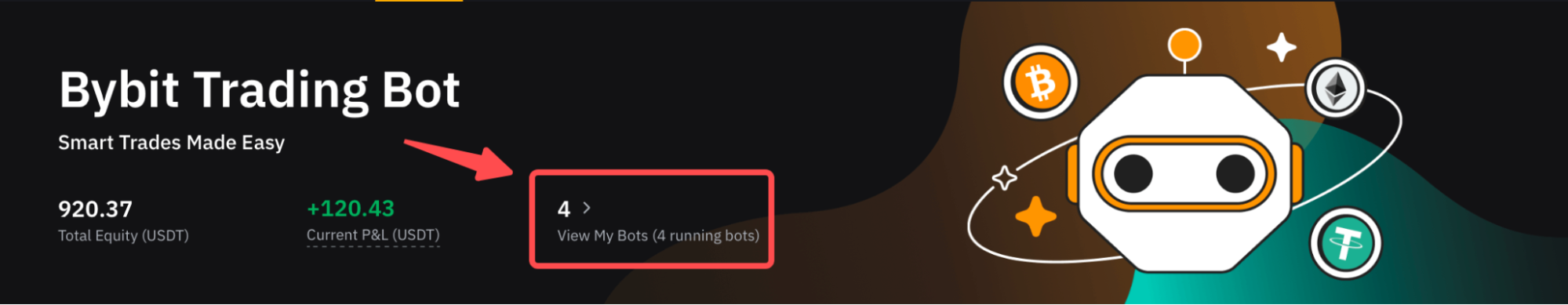 ステップ1:Bybit取引ボット」の「マイボットを表示をクリックして、「マイボット」ページに進んでください。