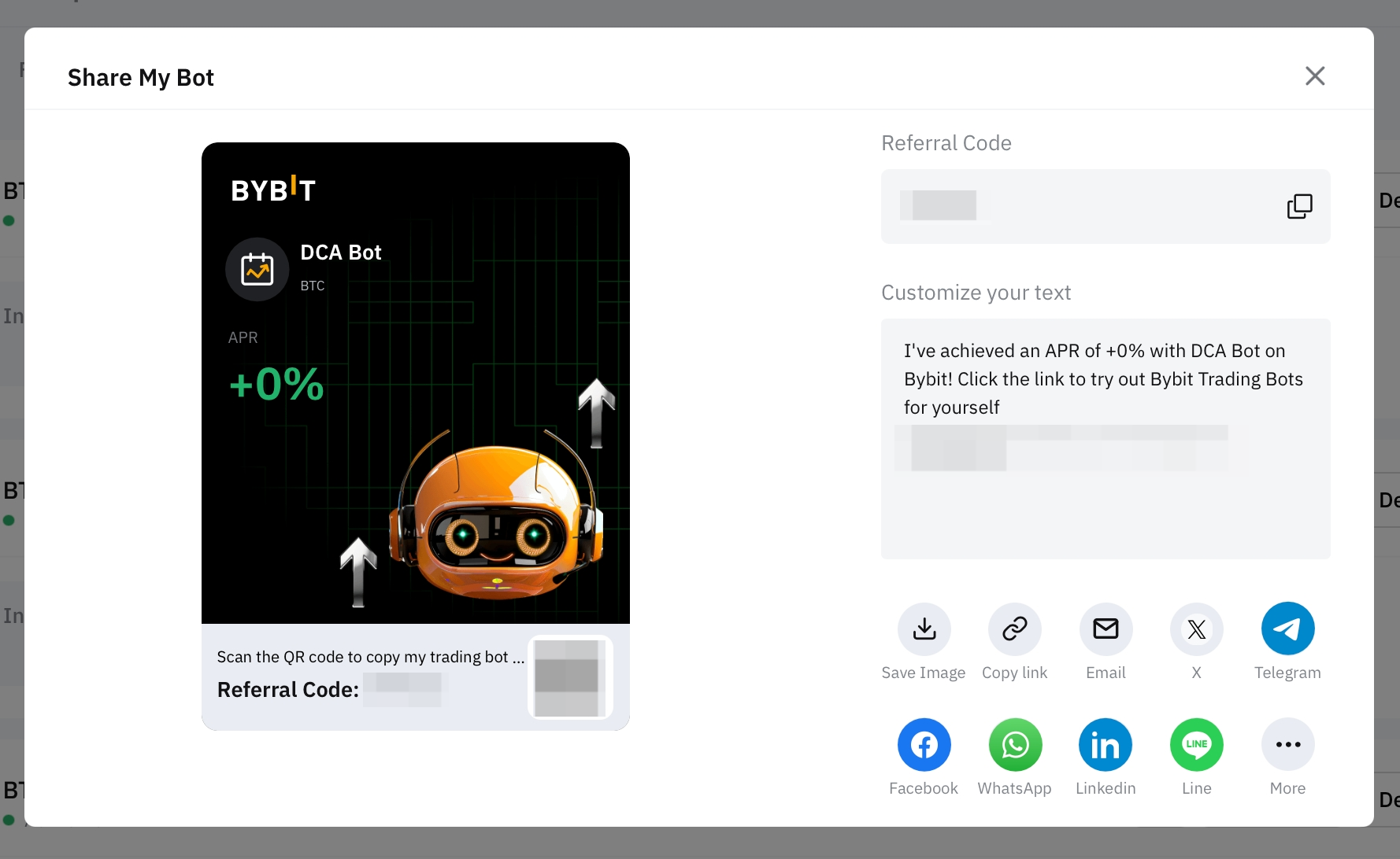 ステップ2:Bybit取引ボット」ページのURLを友達にシェアするには、コピーアイコンをクリックします。