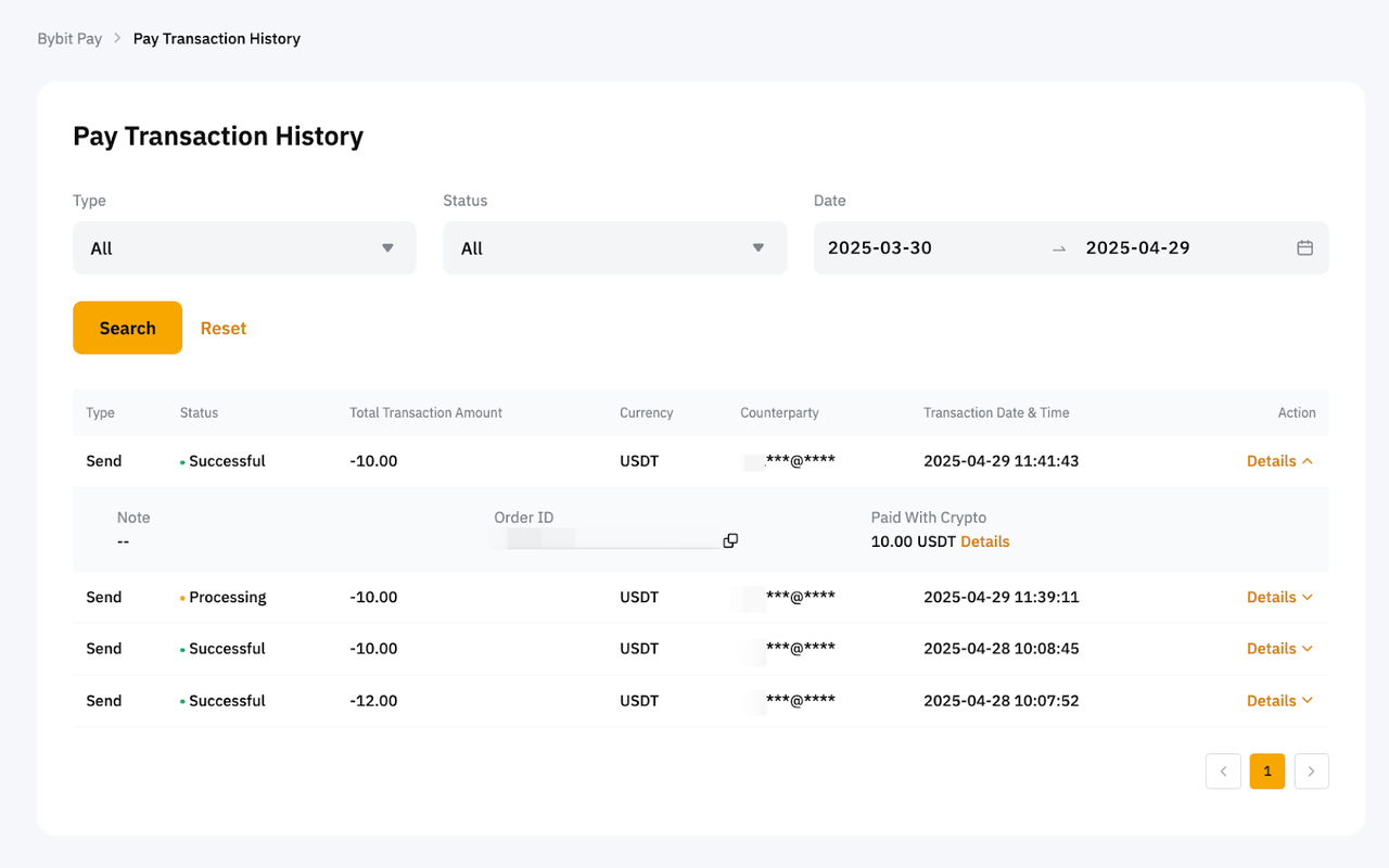 支払い履歴を確認するには、Bybit Payページに移動し、一番下までスクロールして、すべて表示をクリックします。または、決済取引履歴に移動します。