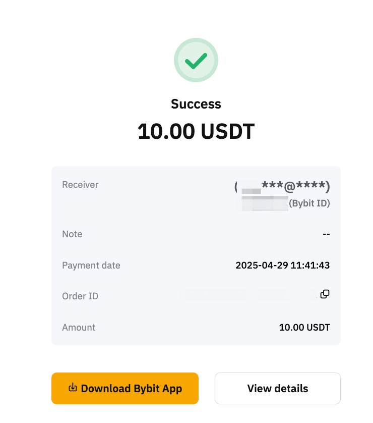 ステップ6: お客様の支払いは受取人に正常に送信されました。