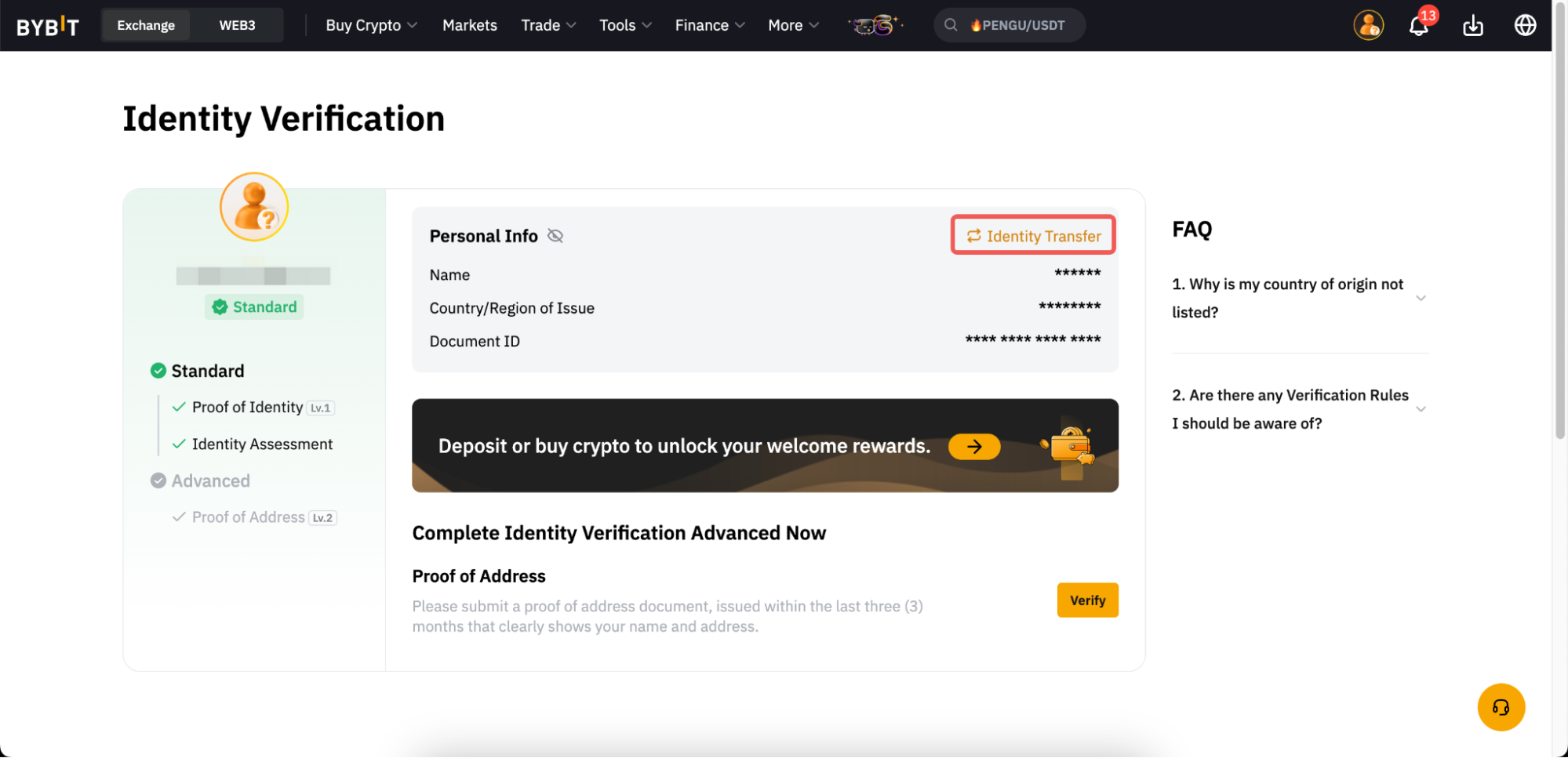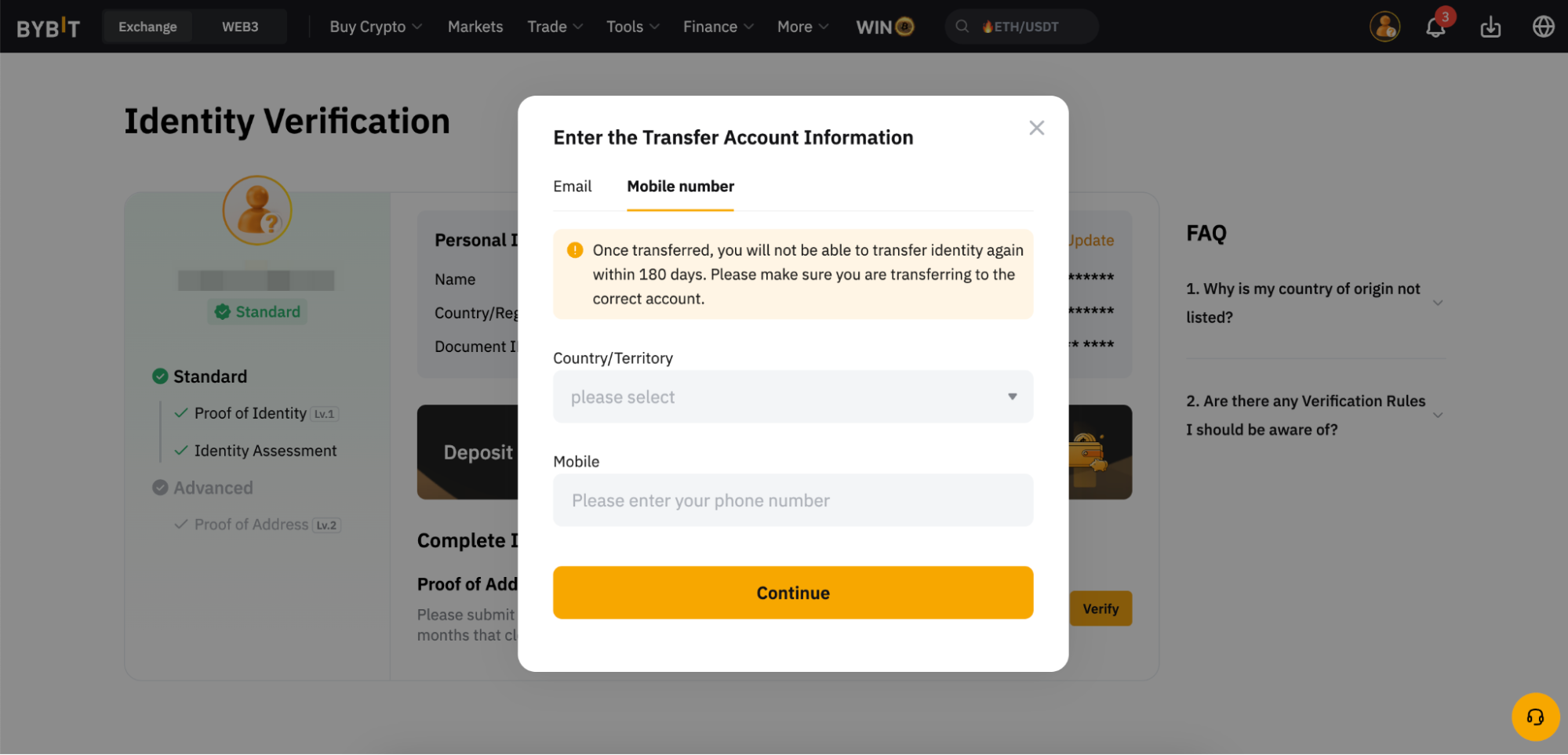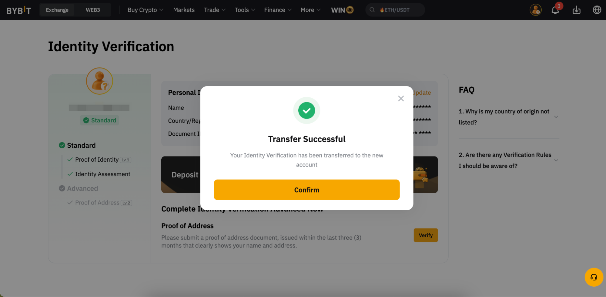 5. 法定通貨資産を保有している、またはP2P取引において未決済の注文や広告がある場合は、本人確認情報の移行を行うことができません。