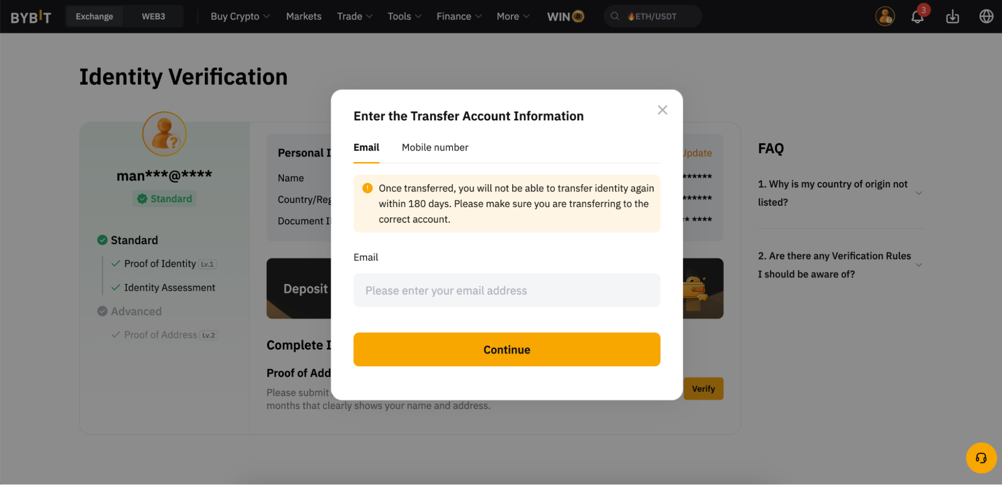 6. 本人認証の移行は、過去5日以内にP2P注文がクローズされている場合はご利用いただけません。これは、取引相手が注文の紛争を申し立てる可能性があるためです。そのため、5日経過後に再度お試しください。