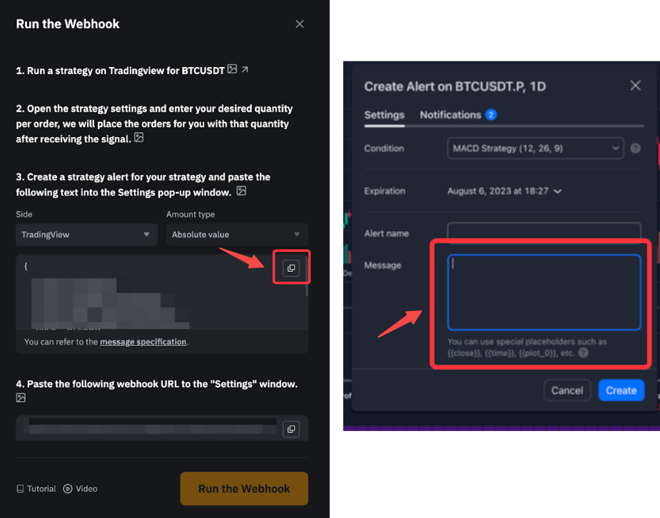 — Bybitページからメッセージテンプレートをコピーし、アラート設定タブのメッセージボックスに貼り付けることができます。