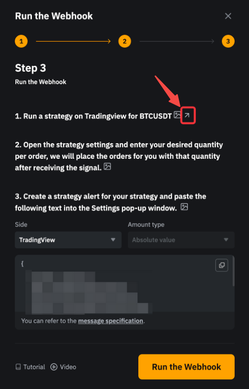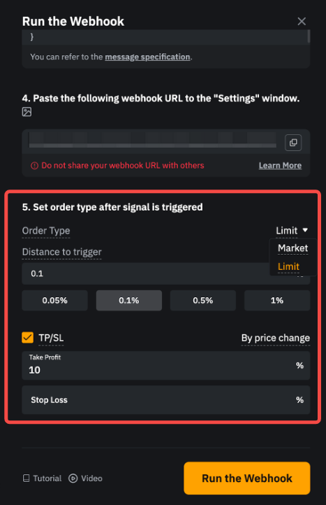 • Webhook設定ページで金額タイプを選択するか、Tradingviewに貼り付けたテンプレートから直接パラメータ値を編集できます。