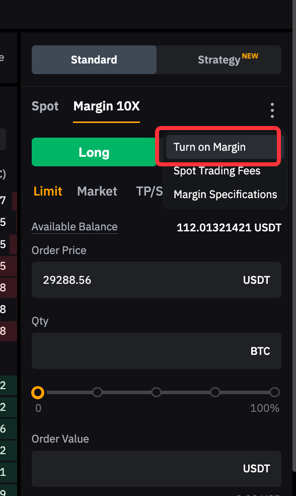 Yes, borrowing funds to trade in the Spot market is possible through the feature of Spot Margin Trading. You can activate this by switching to the Margin Tab in the order zone and turning on Margin Trading.