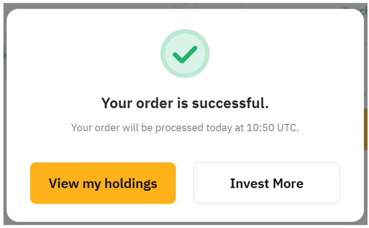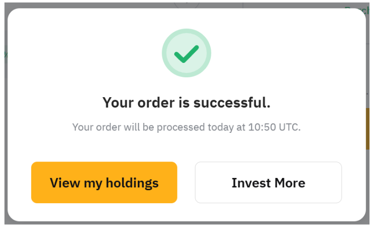 Step 4: Next, you will receive a status notification after submitting the order. Click View My Holdings to check the details, or Invest More to place another order.