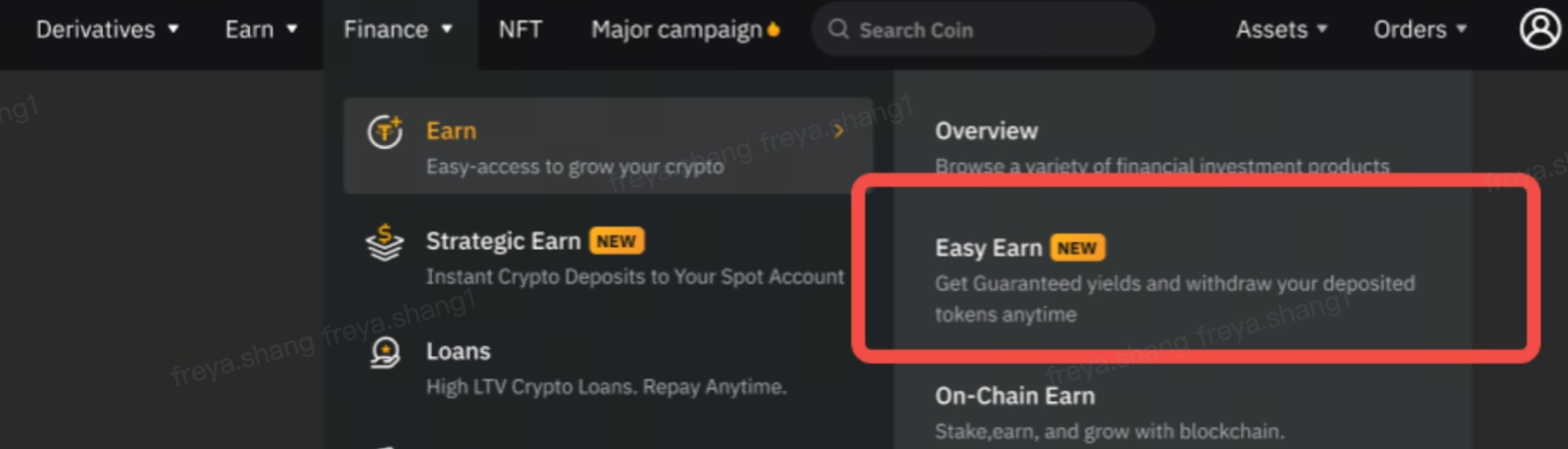 Step 1: Log in to your Bybit account and click Finance → Earn → Easy Earn in the navigation bar.
