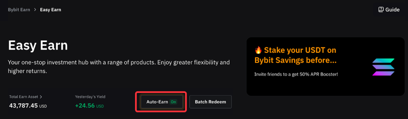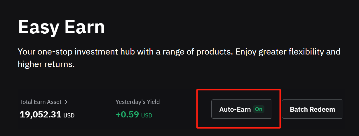 Step 1: Go to the Easy Earn homepage and click Auto-Earn.