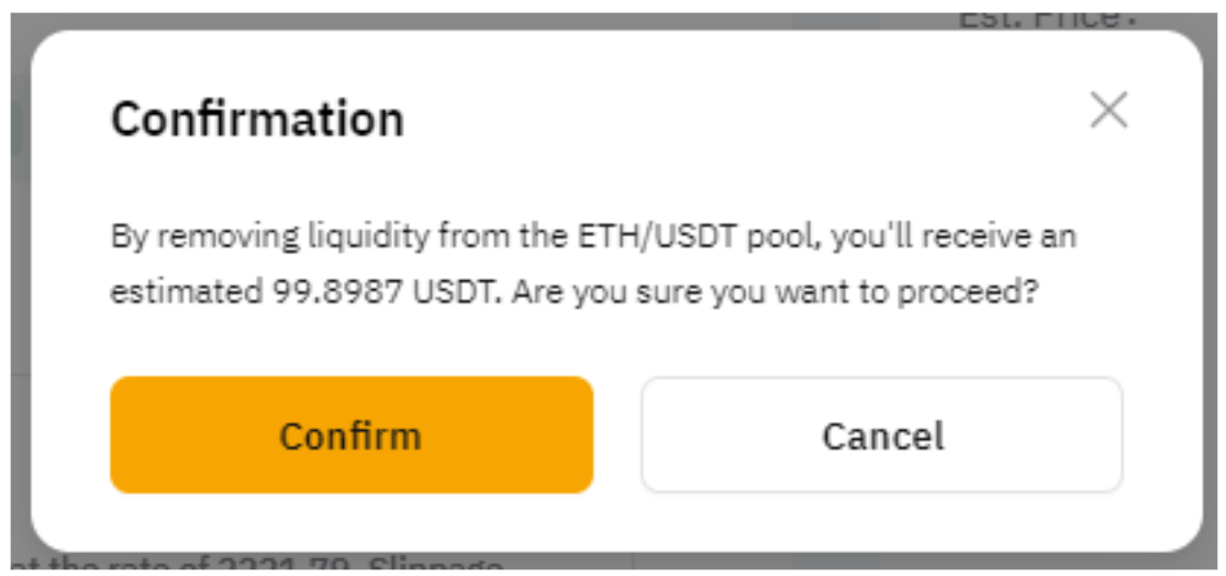 Step 2: Select the liquidity pool from which you wish to remove tokens, and check the amount of the two tokens you will receive. Please double-check the details, and then click on Remove Liquidity.