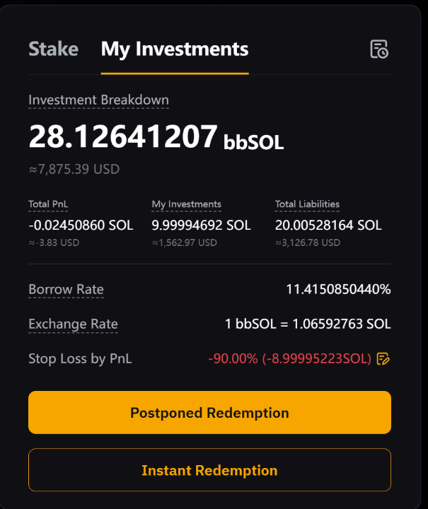 • Postponed Redemption: Get your full principal and all earnings after a 1‒4 day processing period, during which interest will continue to accrue. Your bbSOL will be converted to SOL at the real-time exchange rate when you submit your redemption request.
