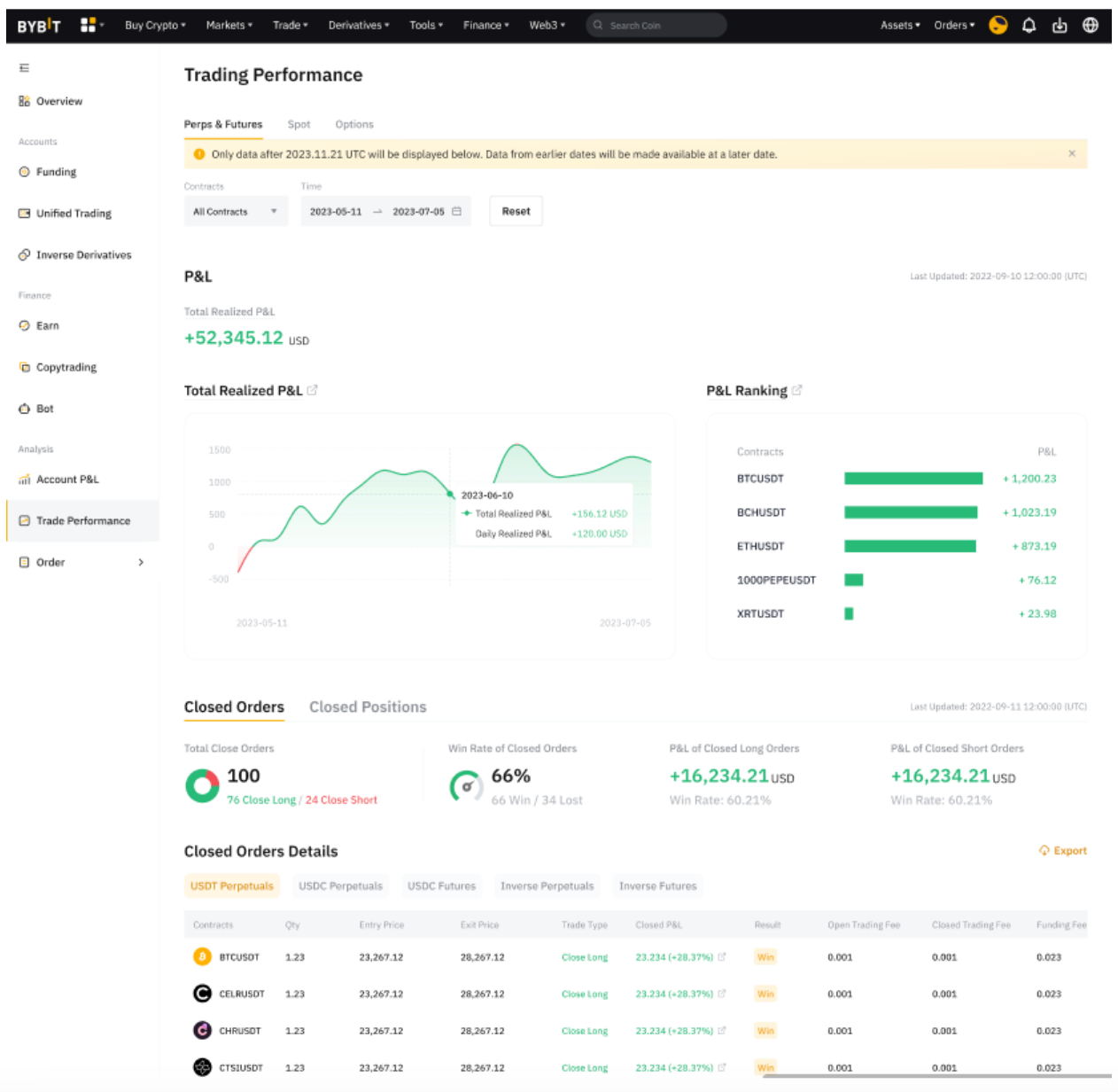 Currently, the trading performance data for Options is only accessible to Unified Trading Account users, whose accounts are viewable in Isolated Margin, Cross Margin, and Portfolio Margin modes.