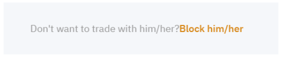 Em situações em que a contraparte específica não está disposta a cooperar, é aconselhável tomar medidas de precaução para evitar encontrar a mesma contraparte novamente. Você pode fazer isso clicando em Bloquear ele/ela na parte inferior da página do perfil.