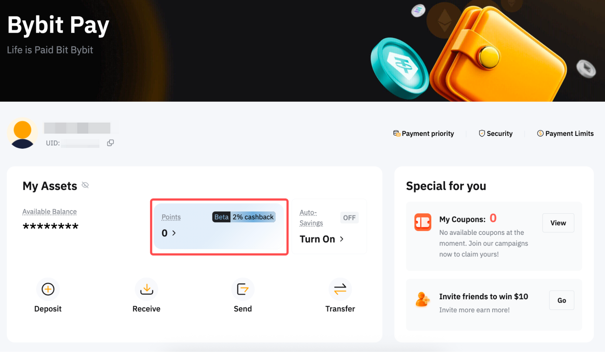 Pontos insuficientes: Você pode não ter pontos suficientes para resgataro item selecionado. Você pode ganhar pontos ao gastar com o Bybit Pay.