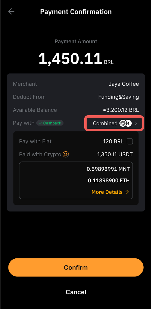 • O pagamento combinado suporta apenas o pagamento em USDT.