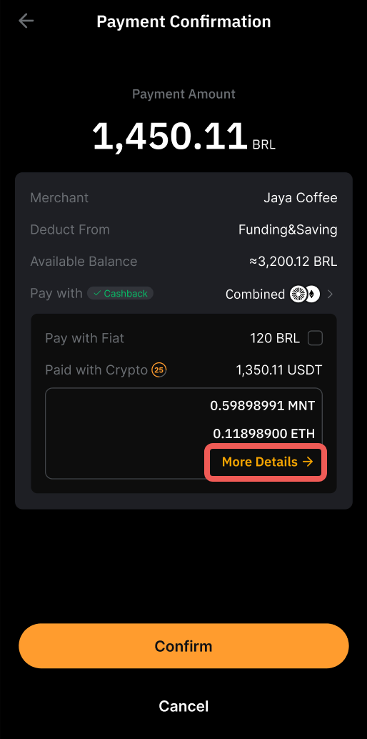 • Você pode clicar em Mais detalhes para visualizar o preço cotado dos outros ativos de criptomoedas utilizáveis.