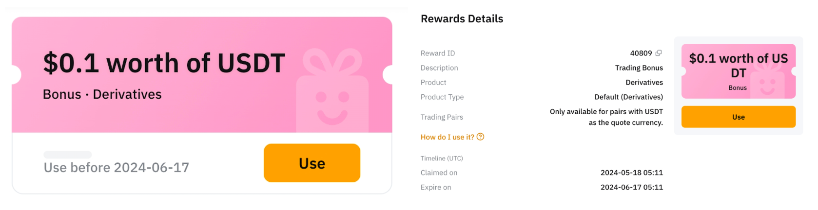 ● O bônus será usado antes do seu próprio capital ao deduzir a taxa de corretagem ou taxas de financiamento correspondentes. No entanto, qualquer posição aberta ocupará seu próprio capital como margem de posição antes de usar o bônus.