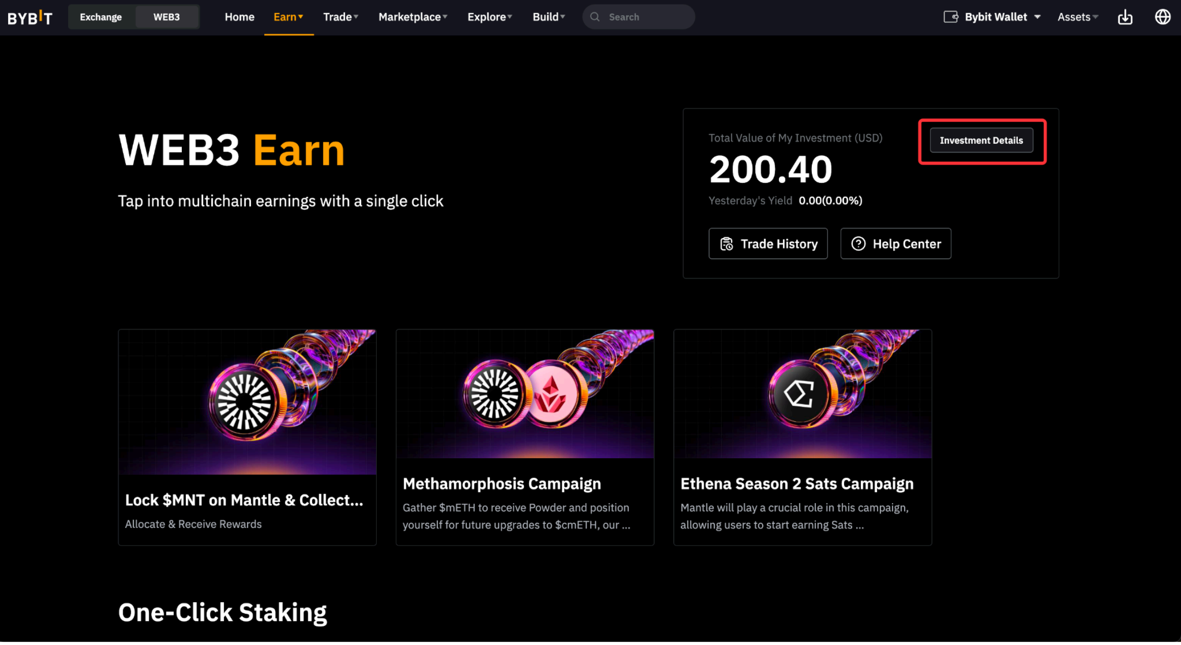 1o passo: Navegue até Wallet → Staking → Detalhes do investimento.