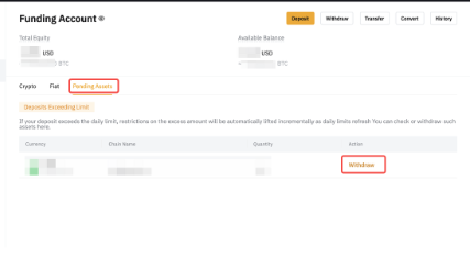К активам, ожидающим перевода, относятся депозиты, ожидающие подтверждения в блокчейне. Требуется дополнительное время, прежде чем эти депозиты можно будет использовать для торговли или вывода средств в соответствии с лимитом, установленным для депозитов.