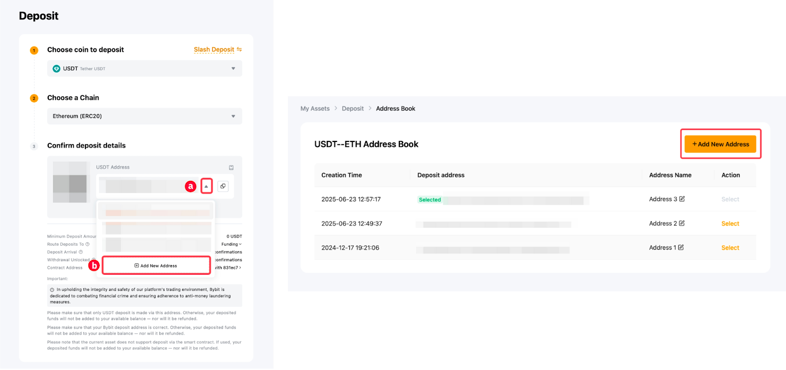 Управлять адресами можно в Адресной Книге, задав Название Адреса или установив предпочитаемый адрес в верхней части страницы депозита.