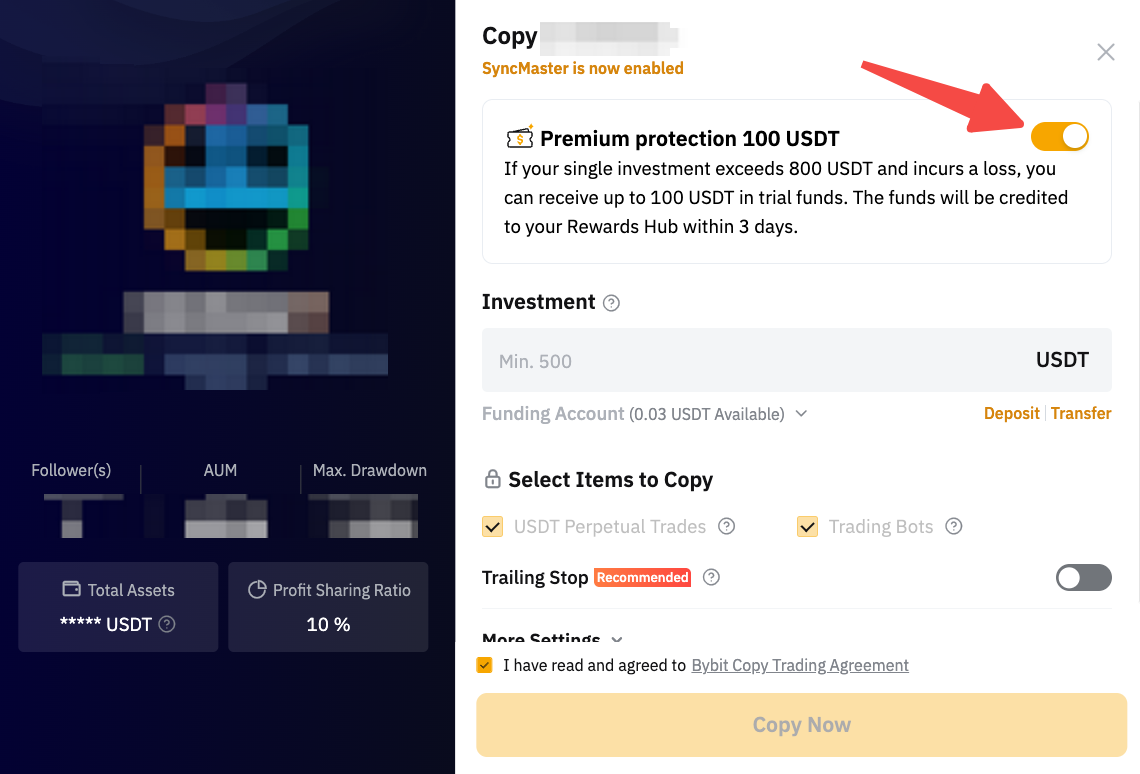 - Пример: Если ваш убыток составляет 10 USDT, вы получите 10 USDT в виде бонуса для Копитрейдинга. Если ваш общий убыток превышает 100 USDT, будет возмещена только 100 USDT, оставшаяся сумма не будет покрываться.