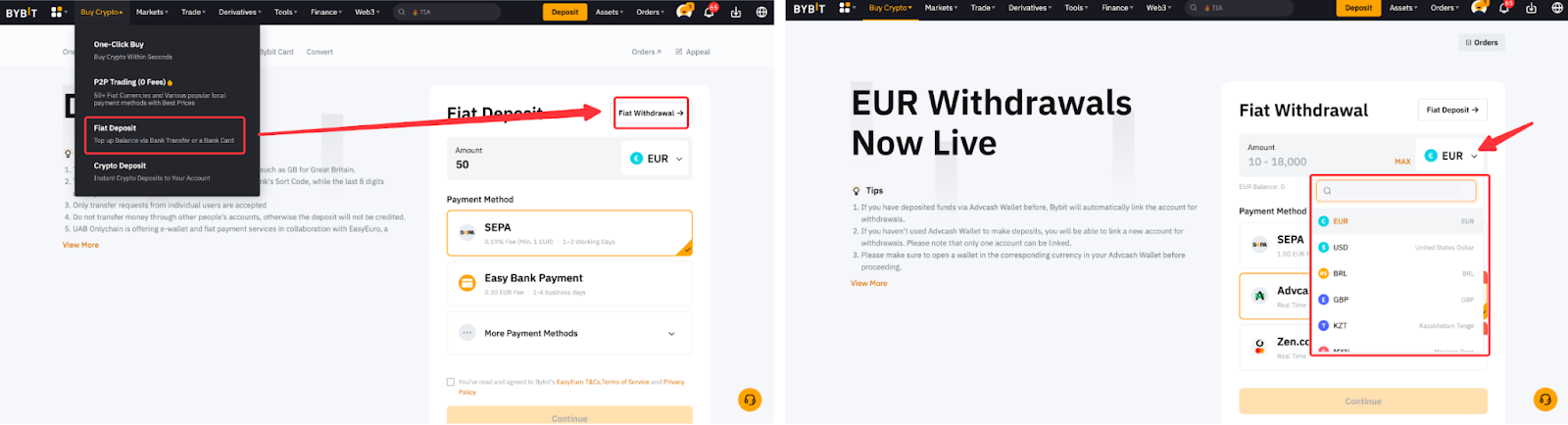 Какие фиатные валюты можно выводить с Bybit?